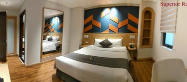 Our Superior Rooms are standard rooms, ideal for those who like to relax and work in peace. These rooms have no windows, allowing guests to fully relax in a quiet atmosphere without any outside distractions. With comfortable interiors, modern amenities and spacious work areas, these rooms are ideal for travelers and businessmen looking for a quiet and functional space. Guests can enjoy a good night's sleep on comfortable beds and use the in-room facilities to relax or work comfortably. Whether you want to sleep peacefully or work efficiently, our Superior Rooms provide you with the perfect, undisturbed environment.